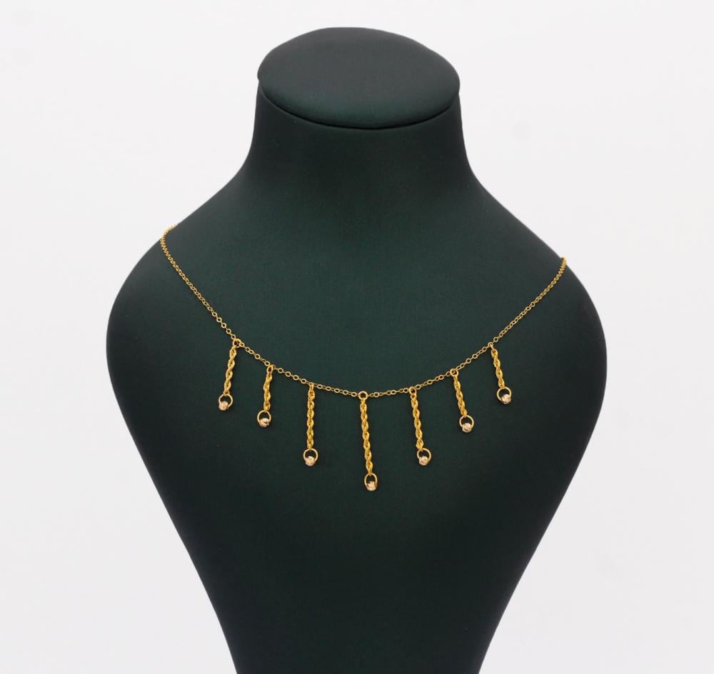 عقد ذهب خالص بتصميم فخم ، ولافت، وطول أنيق ينساب على الرقبة بكل تألق،