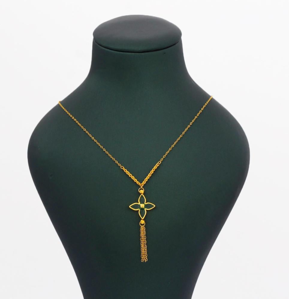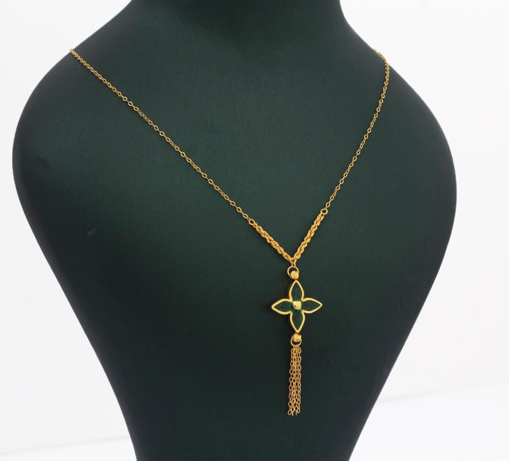 قلادة ذهب خالص بتصميم ناعم ، ولافت، وطول أنيق ينساب على الرقبة بكل تألق،
