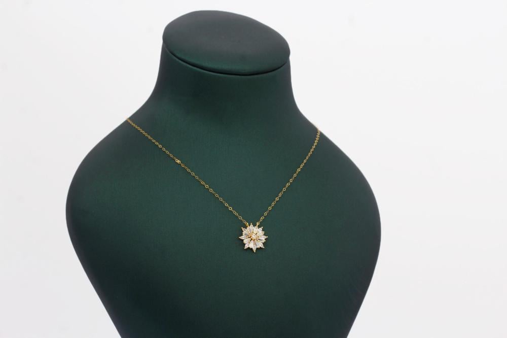 قلادة ذهب خالص بتصميم ناعم ، ولافت، وطول أنيق ينساب على الرقبة بكل تألق،
