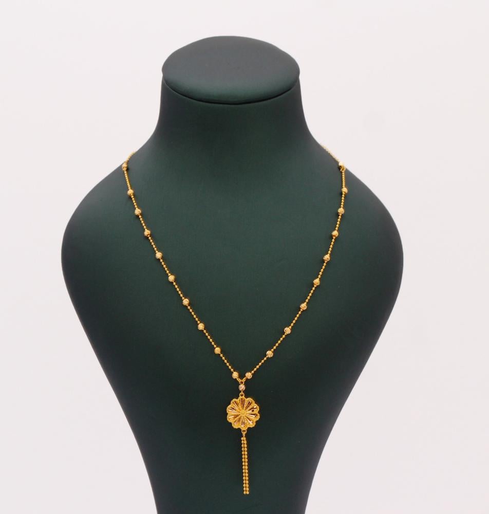 عقد ذهب خالص بتصميم فخم ، ولافت، وطول أنيق ينساب على الرقبة بكل تألق،