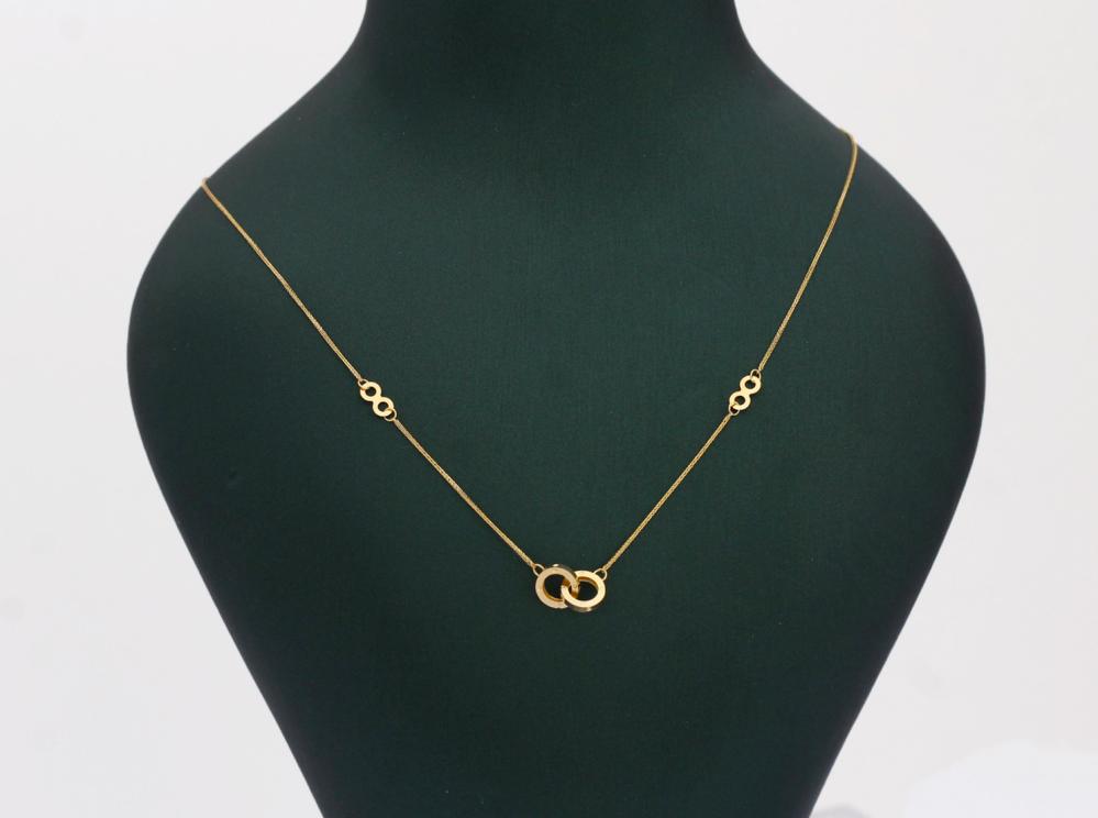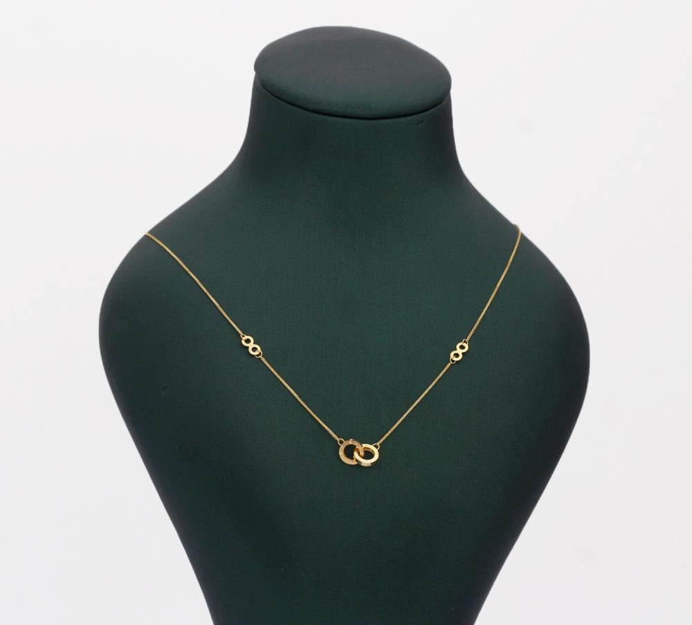 عقد ذهب خالص بتصميم فخم ، ولافت، وطول أنيق ينساب على الرقبة بكل تألق،