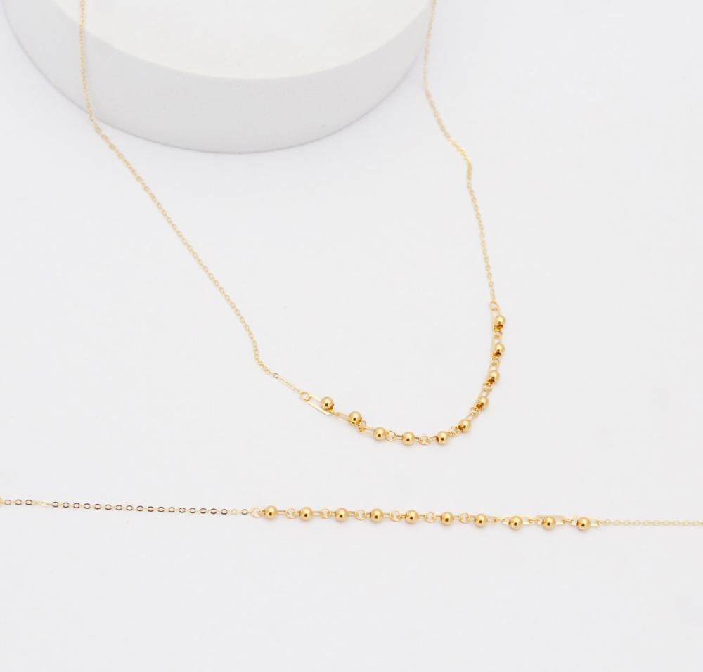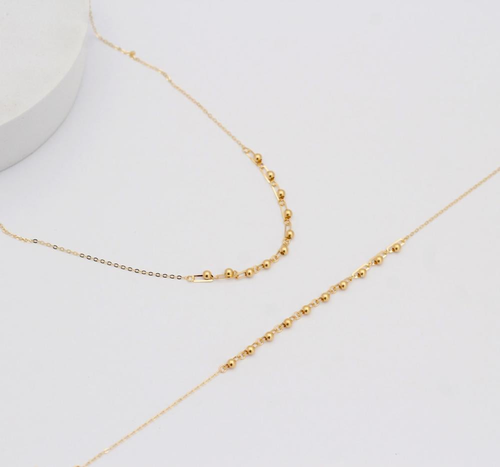 عقد واسوارة ذهب خالص بتصميم فخم ، ولافت، وطول أنيق ينساب على الرقبة بكل تألق،