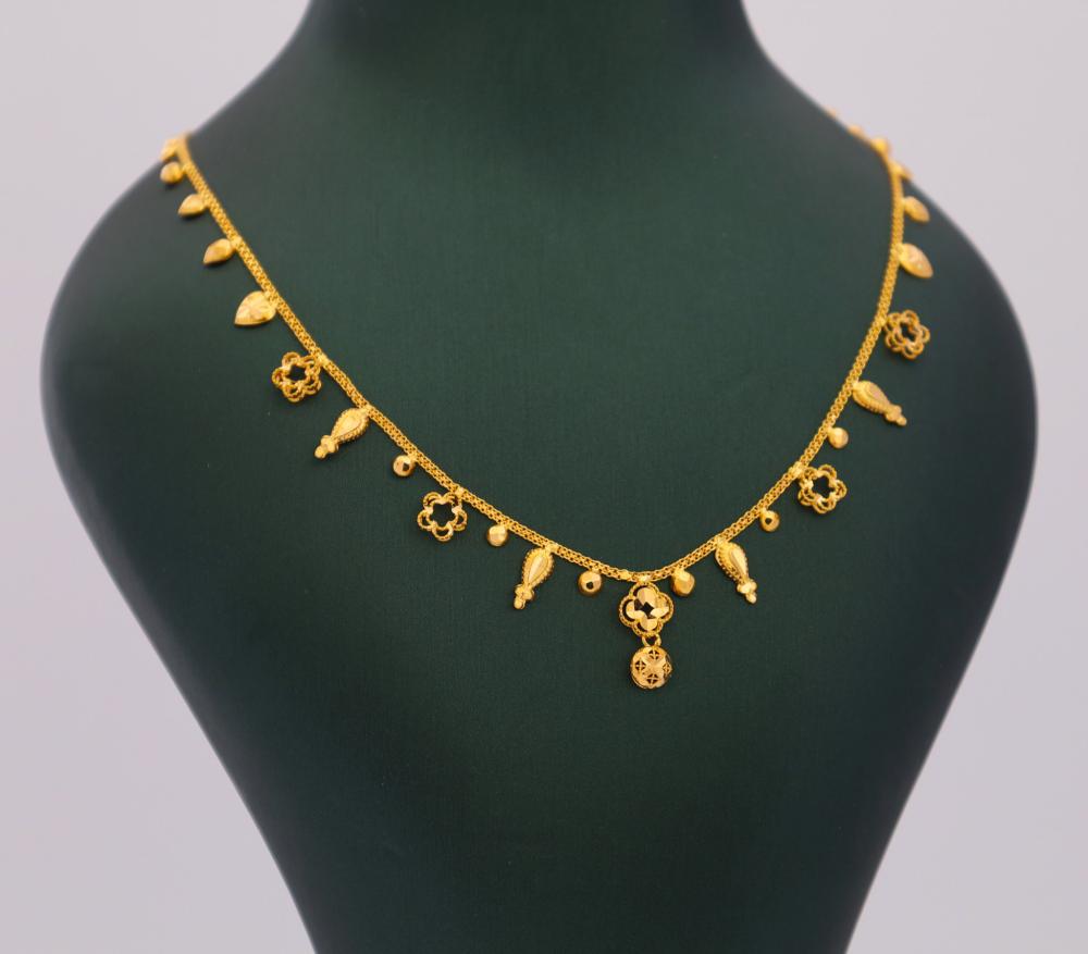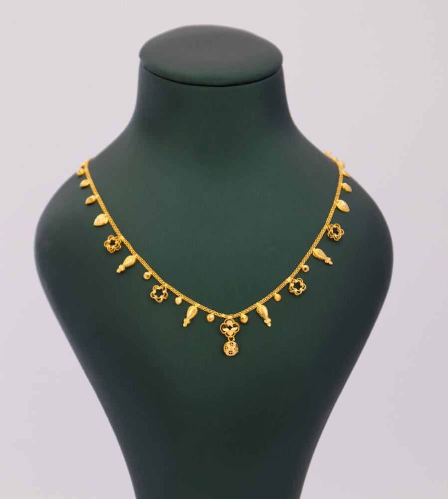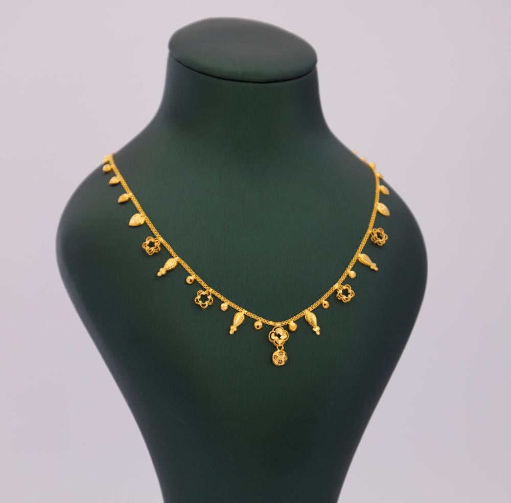 عقد ذهب خالص بتصميم فخم ، ولافت، وطول أنيق ينساب على الرقبة بكل تألق،