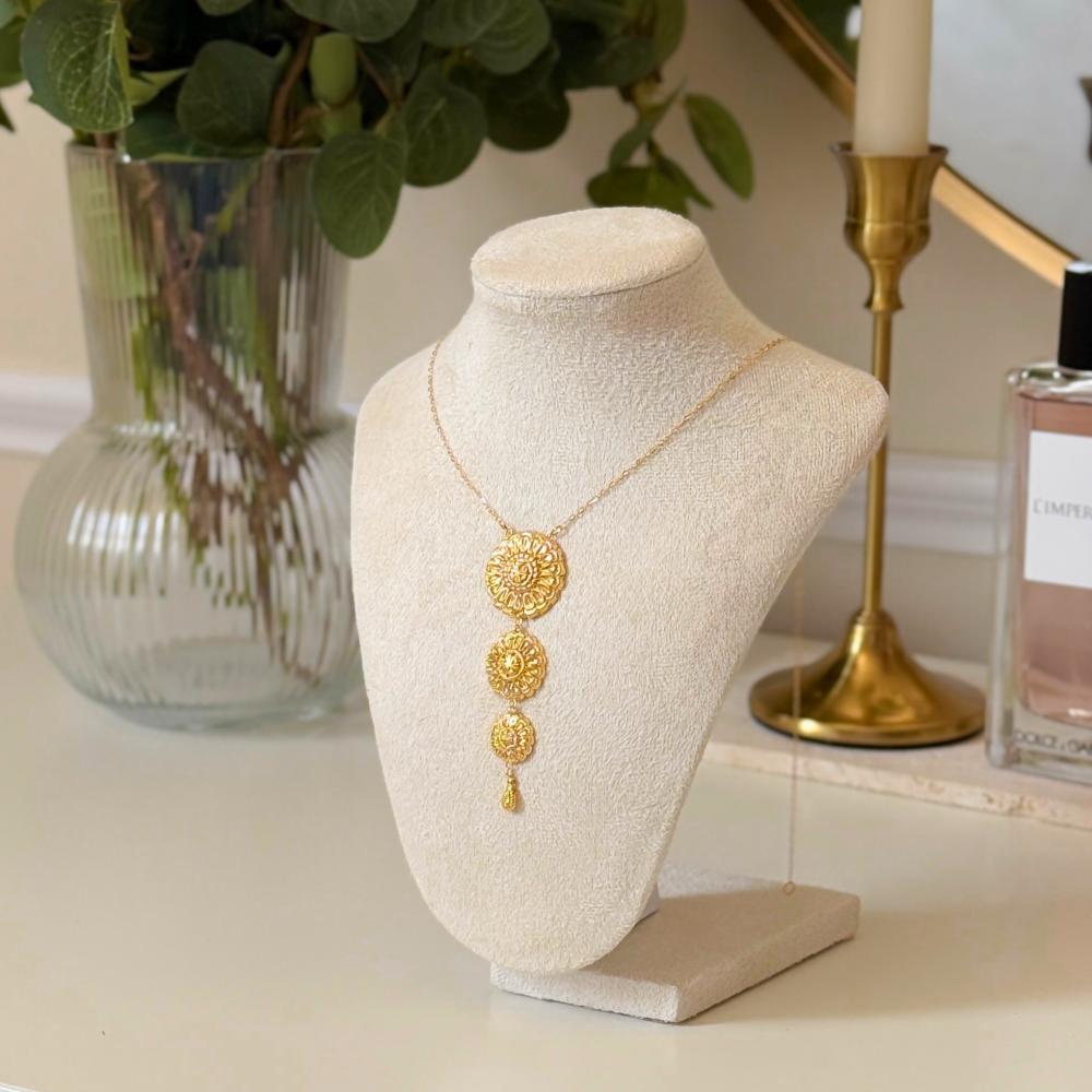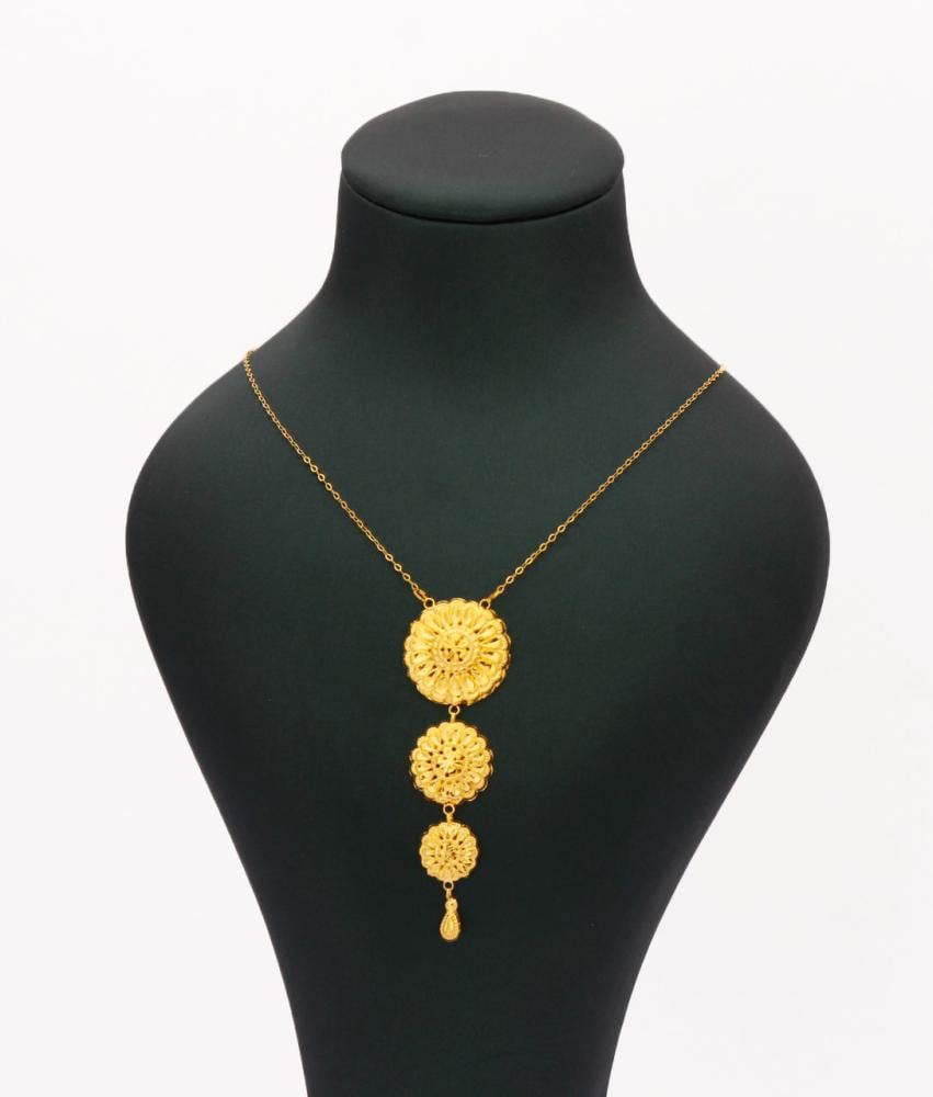 عقد ذهب خالص بتصميم فخم ، ولافت، وطول أنيق ينساب على الرقبة بكل تألق،