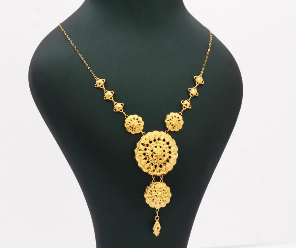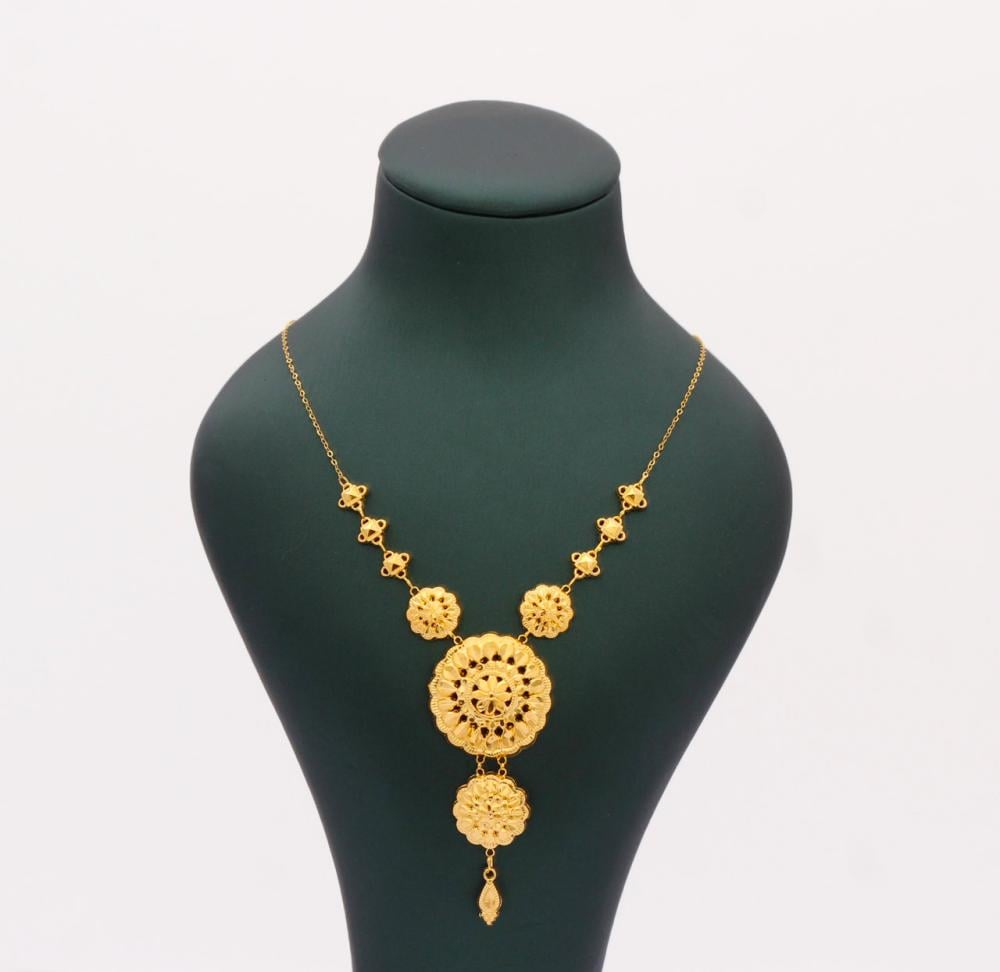 عقد ذهب خالص بتصميم فخم ، ولافت، وطول أنيق ينساب على الرقبة بكل تألق،