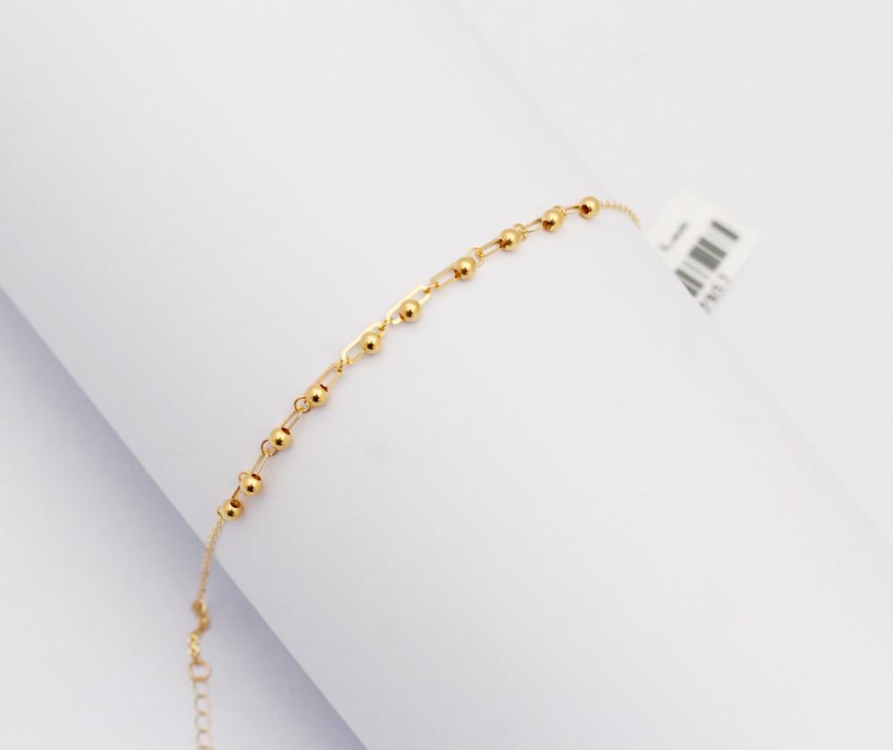 A pure gold bracelet with a luxurious, eye-catching design, and an elegant length that flows on the neck with brilliance.